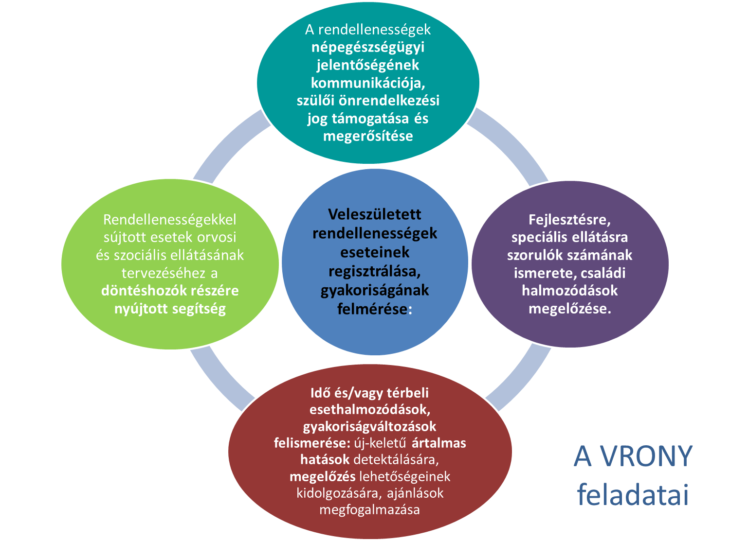 Az 50 éve megalapított és folyamatosan működő Veleszületett Rendellenességek Országos Nyilvántartásban (VRONY) a veleszületett rendellenességek tárgykörén belül elsősorban az anatómiai-morfológiai elváltozások kal járó veleszületett fejlődési rendellenességek (congenital abnormalities, CAs) országos regisztrálása történik.